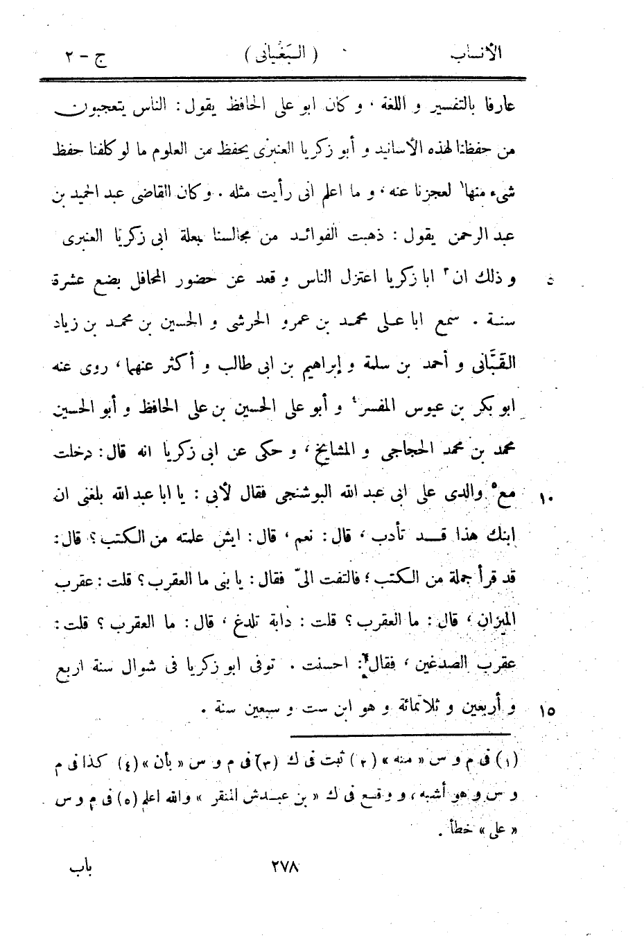 عارفا بالتفسير واللغة، وكان ابو على الحافظ يقول: الناس يتعجبون من حفظنا لهذه الأسانيد وأبو زكريا العنبري يحفظ من العلوم ما لو كلفنا حفظ شيء منها [1] لعجزنا عنه، وما اعلم انى رأيت مثله [2] . وكان القاضي عبد الحميد بن عبد الرحمن يقول: ذهبت الفوائد من مجالسنا بعلة ابى زكريا العنبري وذلك ان [3] ابا زكريا اعتزل الناس وقعد عن حضور المحافل بضع عشرة سنة. سمع ابا على محمد بن عمرو الحرشيّ والحسين بن محمد بن زياد القبّاني وأحمد بن سلمة وإبراهيم بن ابى طالب وأكثر عنهما، روى عنه ابو بكر بن عيوس المفسر [4] وأبو على الحسين بن على الحافظ وأبو الحسين محمد بن محمد الحجاجى والمشايخ، وحكى عن ابى زكريا انه قال: دخلت مع [5] والدي على ابى عبد الله البوشنجي فقال لأبى: يا ابا عبد الله بلغني ان ابنك هذا قد تأدب، قال: نعم، قال: ايش علمته من الكتب؟ قال: