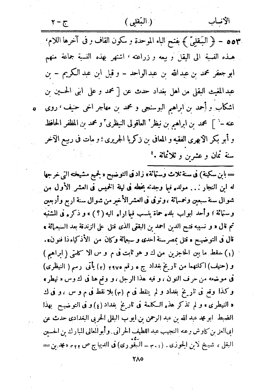 [2] يأتى رسم (النيظرى) في موضعه من حرف النون، وفيه هذا الرجل، ووقع هنا في ك وس «نيطر» وكذا وقع في تاريخ بغداد ولم ينقط في م