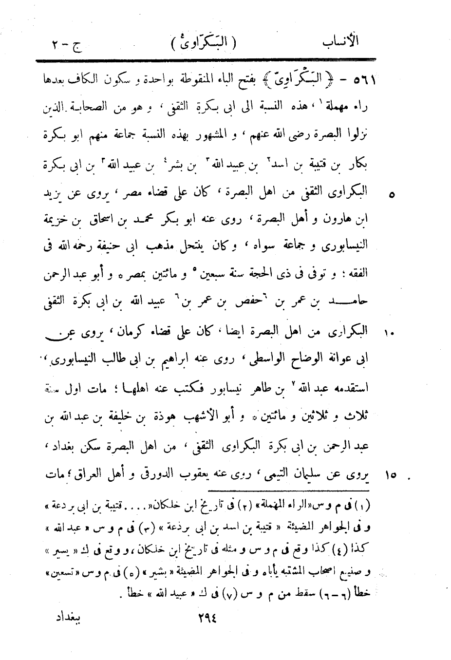 [4] كذا وقع في م وس ومثله في تاريخ ابن خلكان، ووقع في ك «يسير» وصنيع أصحاب المشتبه يأباه وفي الجواهر المضيئة «بشير»