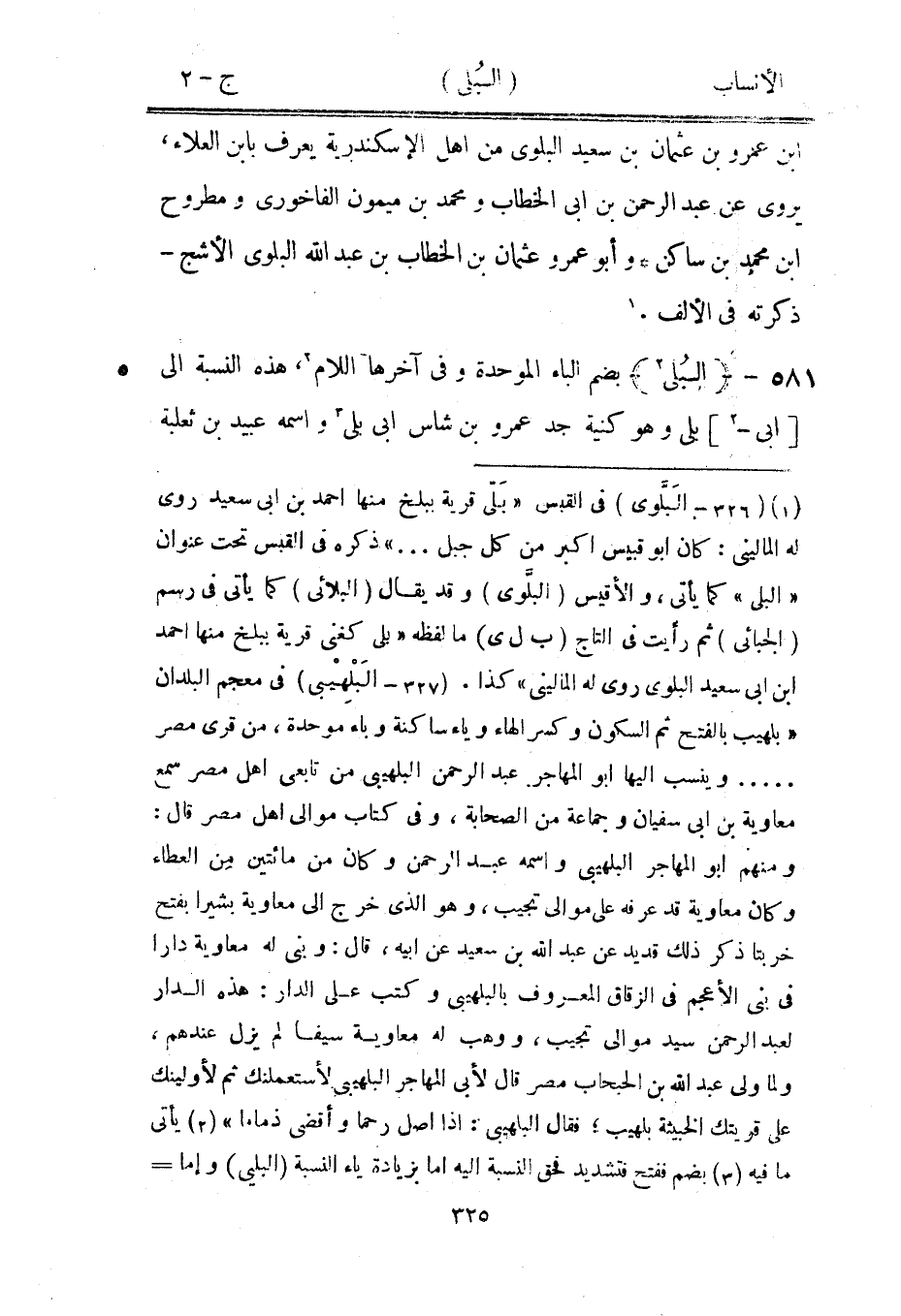 [3] بضم ففتح فتشديد فحق النسبة اليه اما بزيادة ياء النسبة (البليى) وإما-