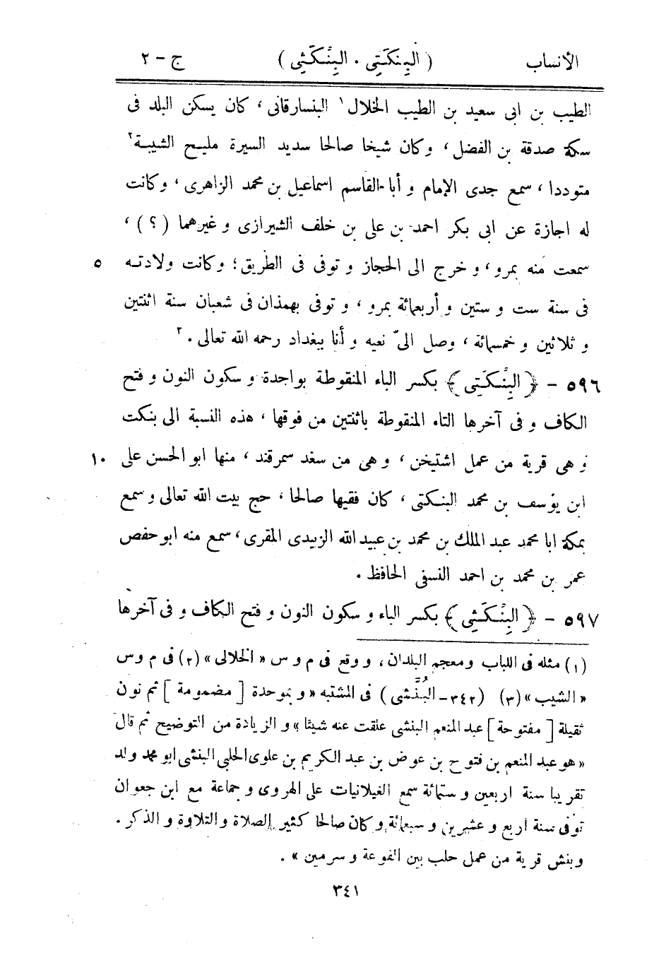 [3] (342- البنّشى) في المشتبه «وبموحدة [مضمومة] ثم نون ثقيلة [مفتوحة] عبد المنعم البنشى علقت عنه شيئا» والزيادة من التوضيح ثم قال «هو عبد المنعم بن فتوح بن عوض بن عبد الكريم بن علوي الحلبي البنشى ابو محمد ولد تقريبا سنة أربعين وستمائة سمع الغيلانيات على الهروي وجماعة مع ابن جعوان توفى سنة اربع وعشرين وسبعمائة وكان صالحا كثير الصلاة والتلاوة والذكر.