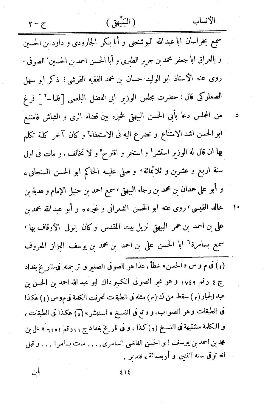 [1] في م وس «الحسن» خطأ، هذا هو الصوفي الصغير وترجمته في تاريخ بغداد ج 4 رقم 1749 وهو غير الصوفي الكبير داك ابو عبد الله احمد بن الحسن بن عبد الجبار