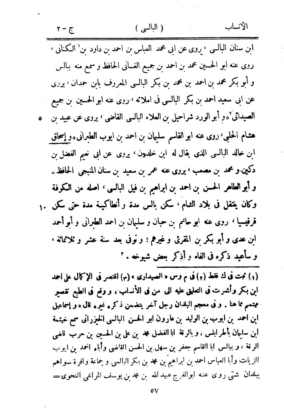 [3] اقتصر في الإكمال على احمد ابن بكر وأشرت في التعليق عليه الى من في الأنساب، ووقع في الطبع تقصير فيتمم مما هنا. وفي معجم البلدان رجل آخر يتضمن ذكره غيره قال «وإسماعيل ابن احمد بن أيوب بن الوليد بن هارون ابو الحسن البالسي الخيزراني سمع خيثمة ابن سليمان بأطرابلس، وبالرقة ابا الفضل محمد بن على بن الحسين بن حرب قاضى الرقة، وببالس ابا القاسم جعفر بن سهل بن الحسن القاضي وأباه احمد بن أيوب الزيات وأبا العباس احمد بن إبراهيم بن محمد بن بكر البالسي وجماعة وافرة سواهم ببلدان شتى روى عنه ابو الفرج عبيد الله بن محمد بن يوسف المراغي النحويّ-