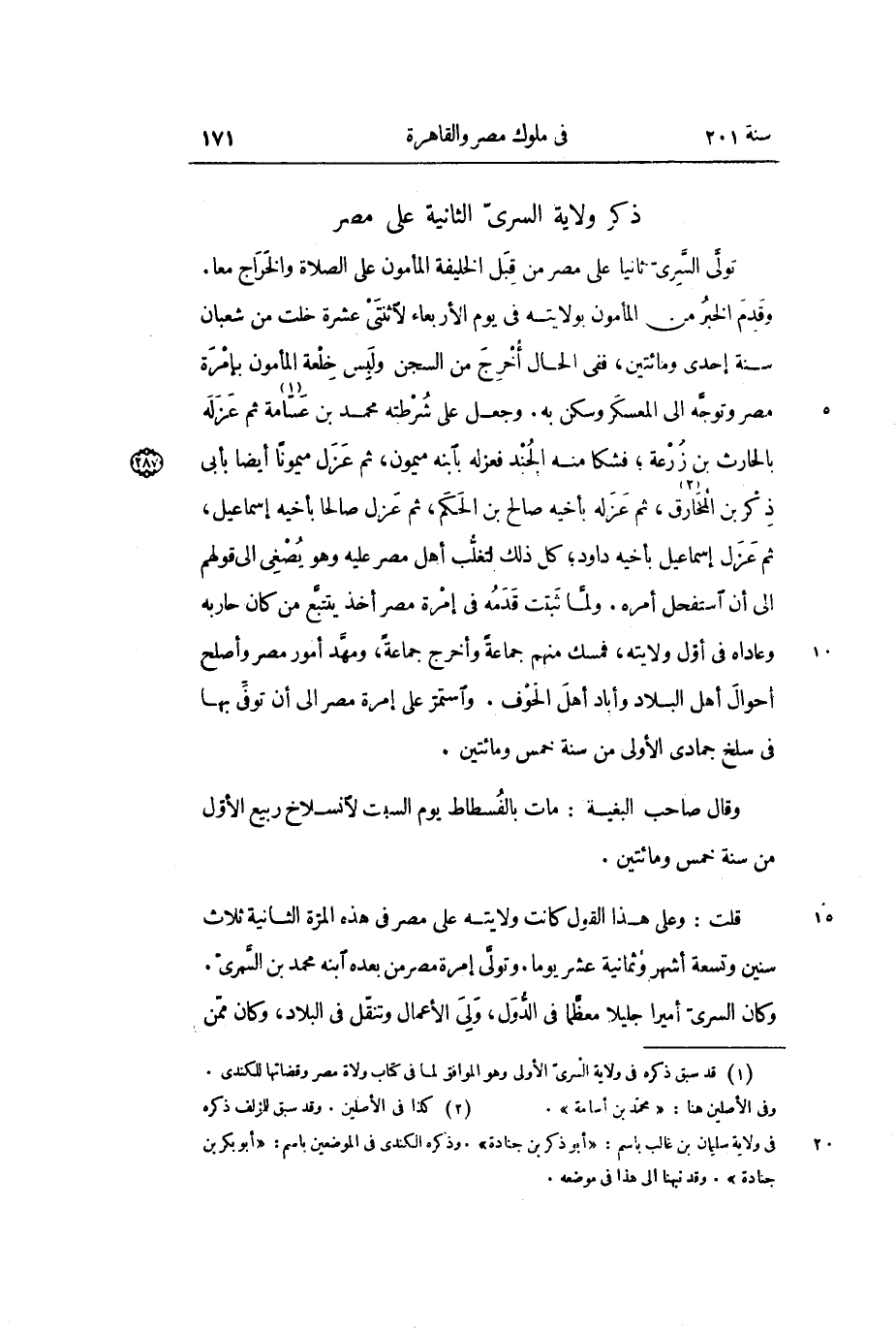 تولى السري ثانياً على مصر من قبل الخليفة المأمون على الصلاة والخراج معاً.