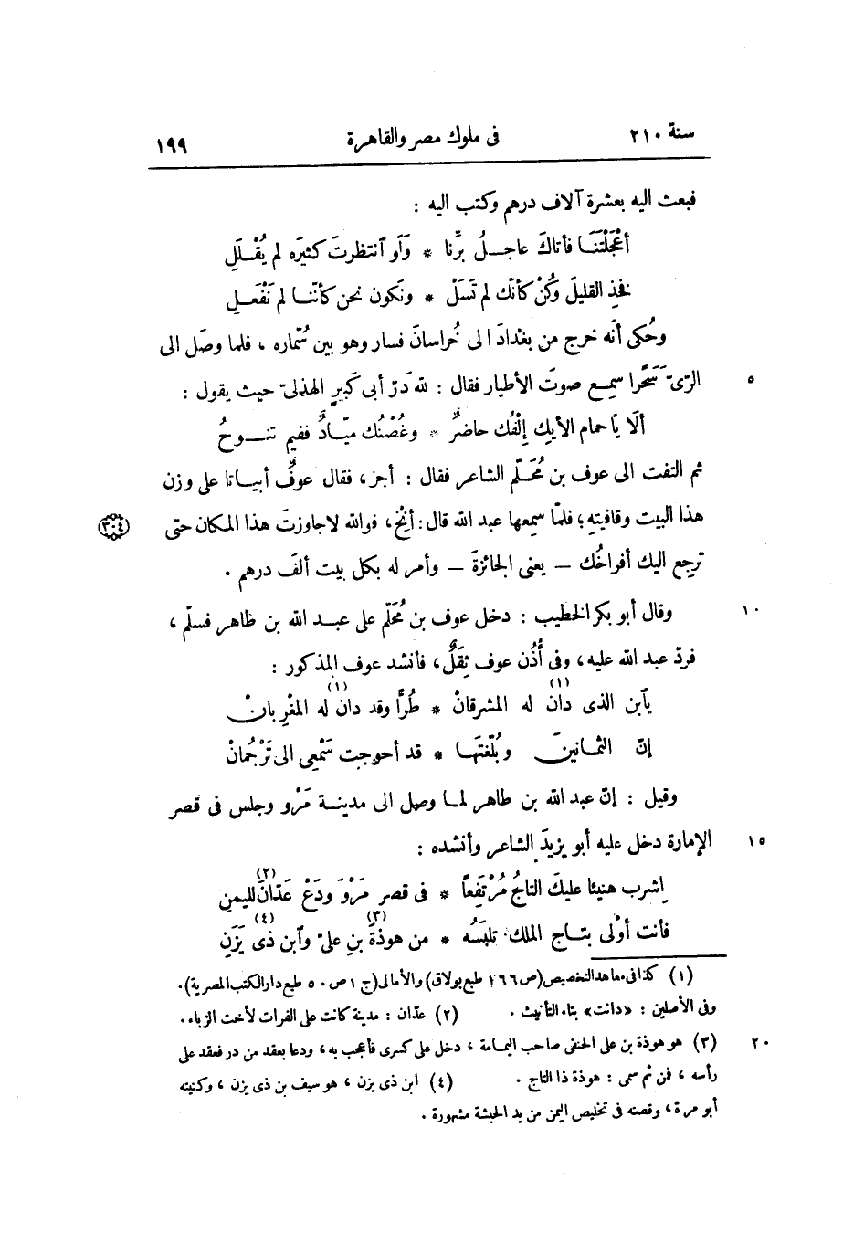 وقال أبو بكر الخطيب: دخل عوف بن محلم على عبد الله بن طاهر فسلم، فرد عبد الله عليه، وفي أذن عوف ثقل، فأنشد عوف المذكور: