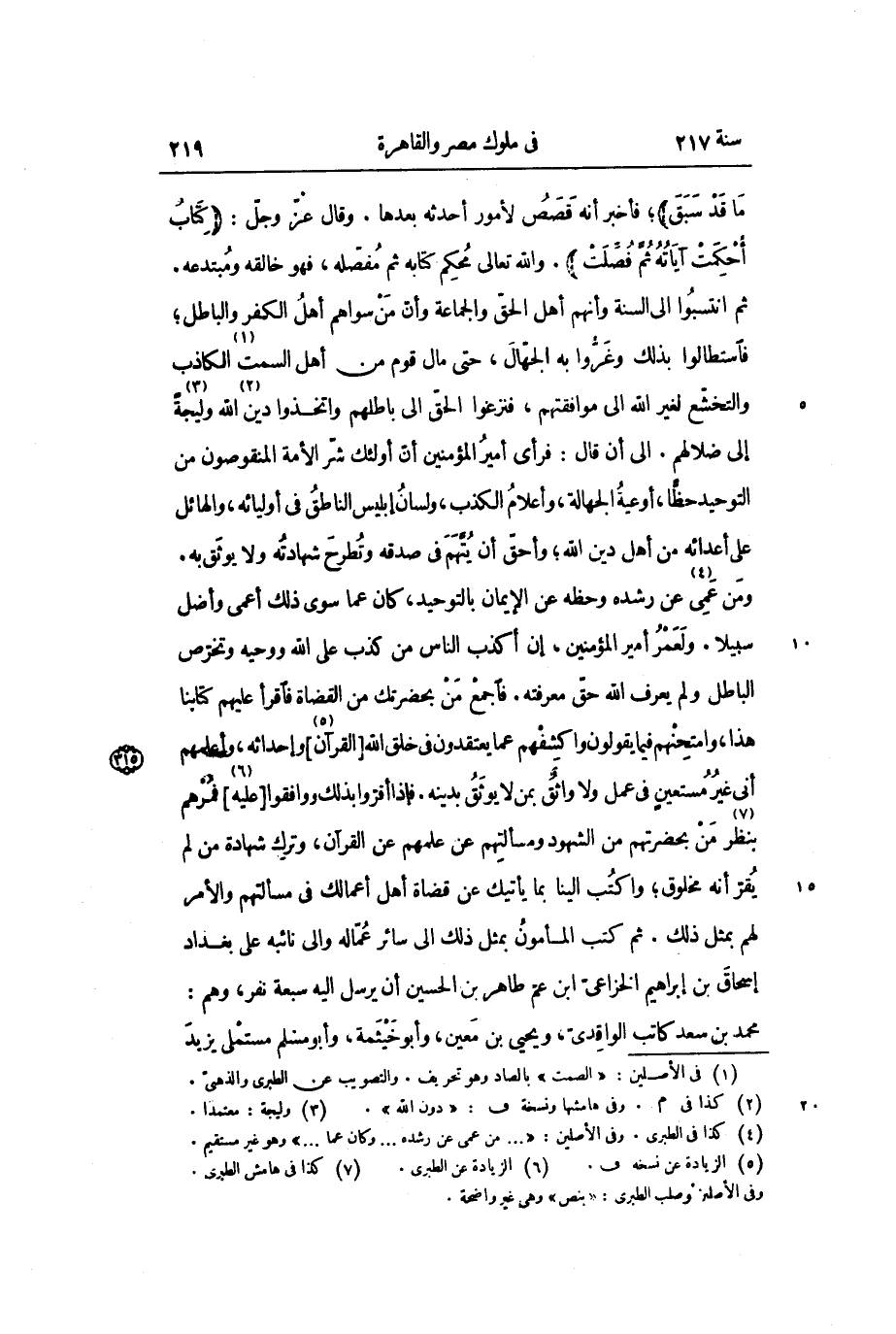 ومن عمى «4» عن رشده وحظه عن الإيمان بالتوحيد، كان عما سوى ذلك أعمى وأضل سبيلا. ولعمر أمير المؤمنين، إن أكذب الناس من كذب على الله ووحيه وتخرّص الباطل ولم يعرف الله حقّ معرفته. فاجمع من بحضرتك من القضاة فاقرأ عليهم كتابنا هذا، وامتحنهم فيما يقولون واكشفهم عما يعتقدون فى خلق الله [القرآن «5» ] وإحداثه، وأعلمهم أنى غير مستعين فى عمل ولا واثق بمن لا يوثق بدينه. فإذا أقرّوا بذلك ووافقوا [عليه «6» ] فمرهم بنظر «7» من بحضرتهم من الشهود ومسألتهم عن علمهم عن القرآن، وترك شهادة من لم يقرّ أنه مخلوق؛ واكتب الينا بما يأتيك عن قضاة أهل أعمالك فى مسألتهم والأمر لهم بمثل ذلك. ثم كتب المأمون بمثل ذلك الى سائر عمّاله والى نائبه على بغداد إسحاق بن إبراهيم الخزاعىّ ابن عمّ طاهر بن الحسين أن يرسل اليه سبعة نفر، وهم: