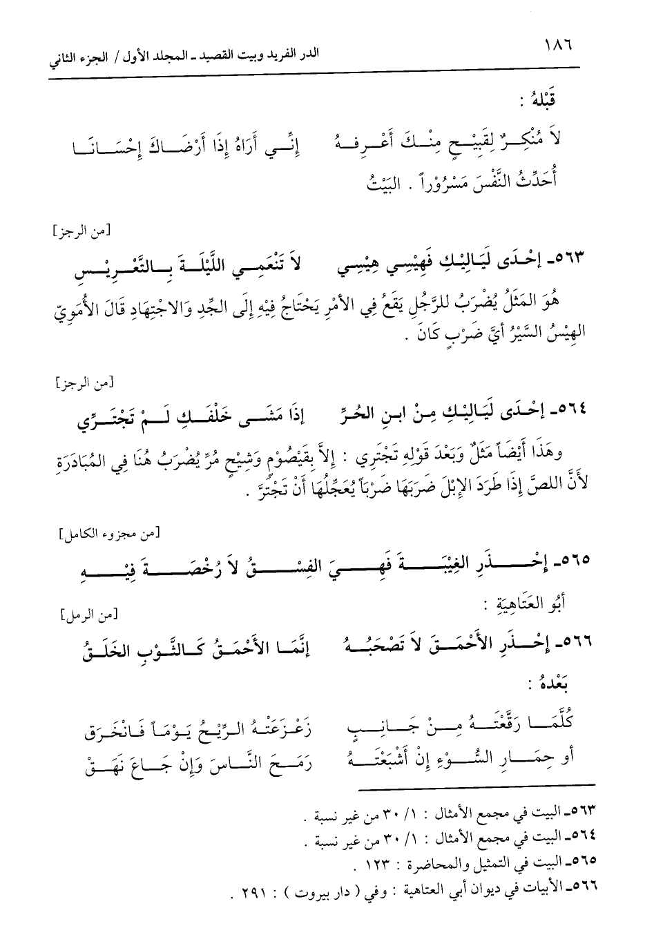 563 - البيت في مجمع الأمثال: 1/ 30 من غير نسبة.