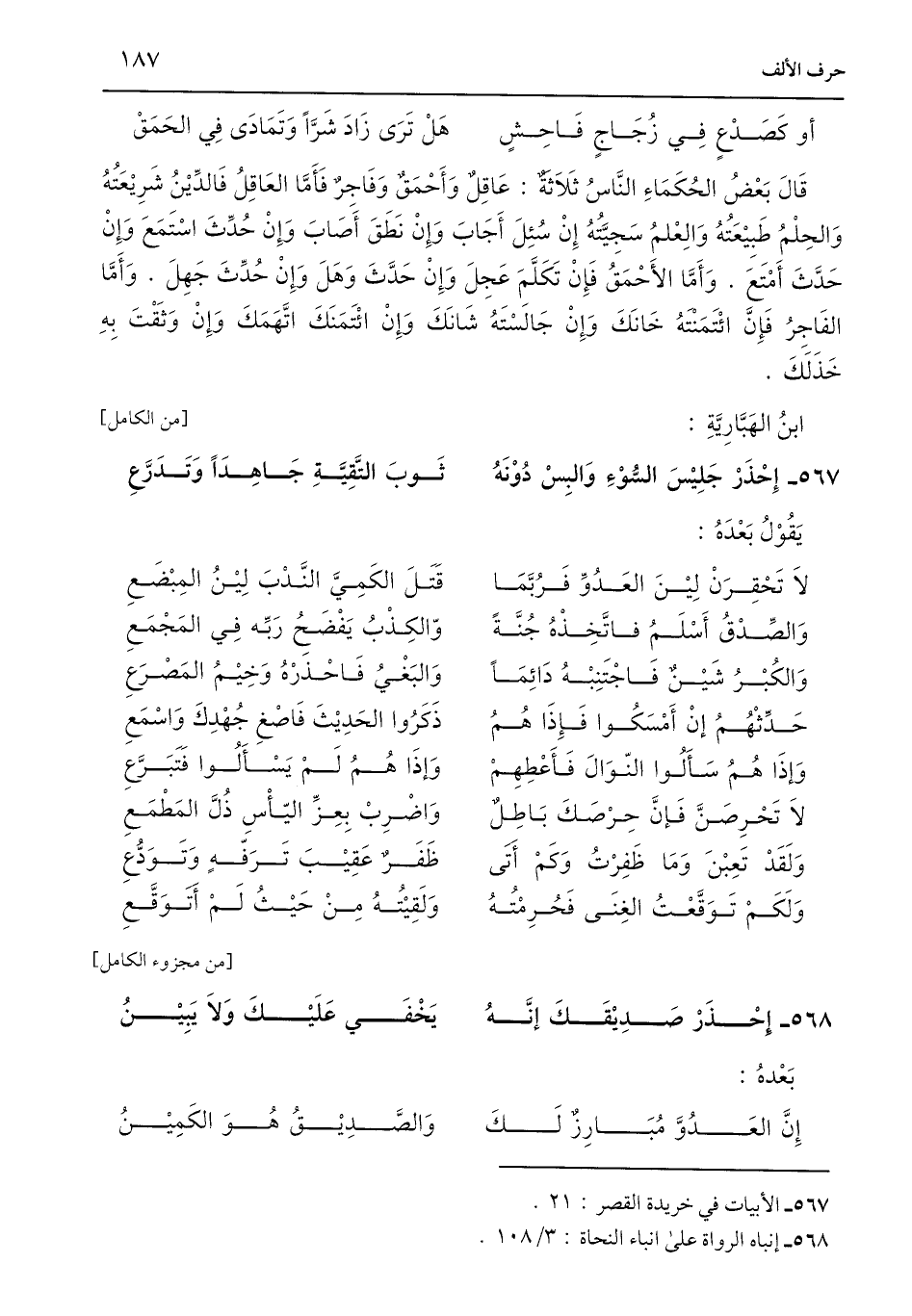 568 - إحْذَرْ صَدِيْقَكَ إنَّه ... يَخْفَي عَلَيْكَ وَلَا يَبِيْنُ