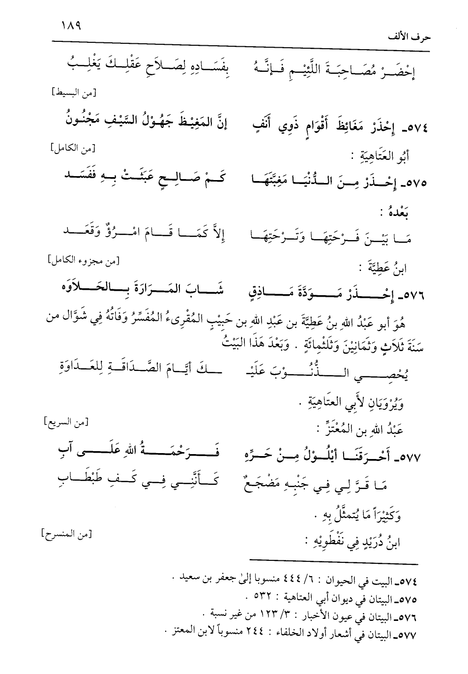 577 - البيتان في أشعار أولاد الخلفاء: 244 منسوبًا لابن المعتز.