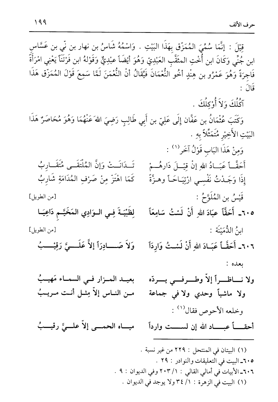 606 - أَحَقًّا عَبَادَ اللَّهِ أَنْ لَسْتُ وَارِدًا ... وَلَا صَادِرًا إِلَّا عَلَيَّ رَقِيْبُ