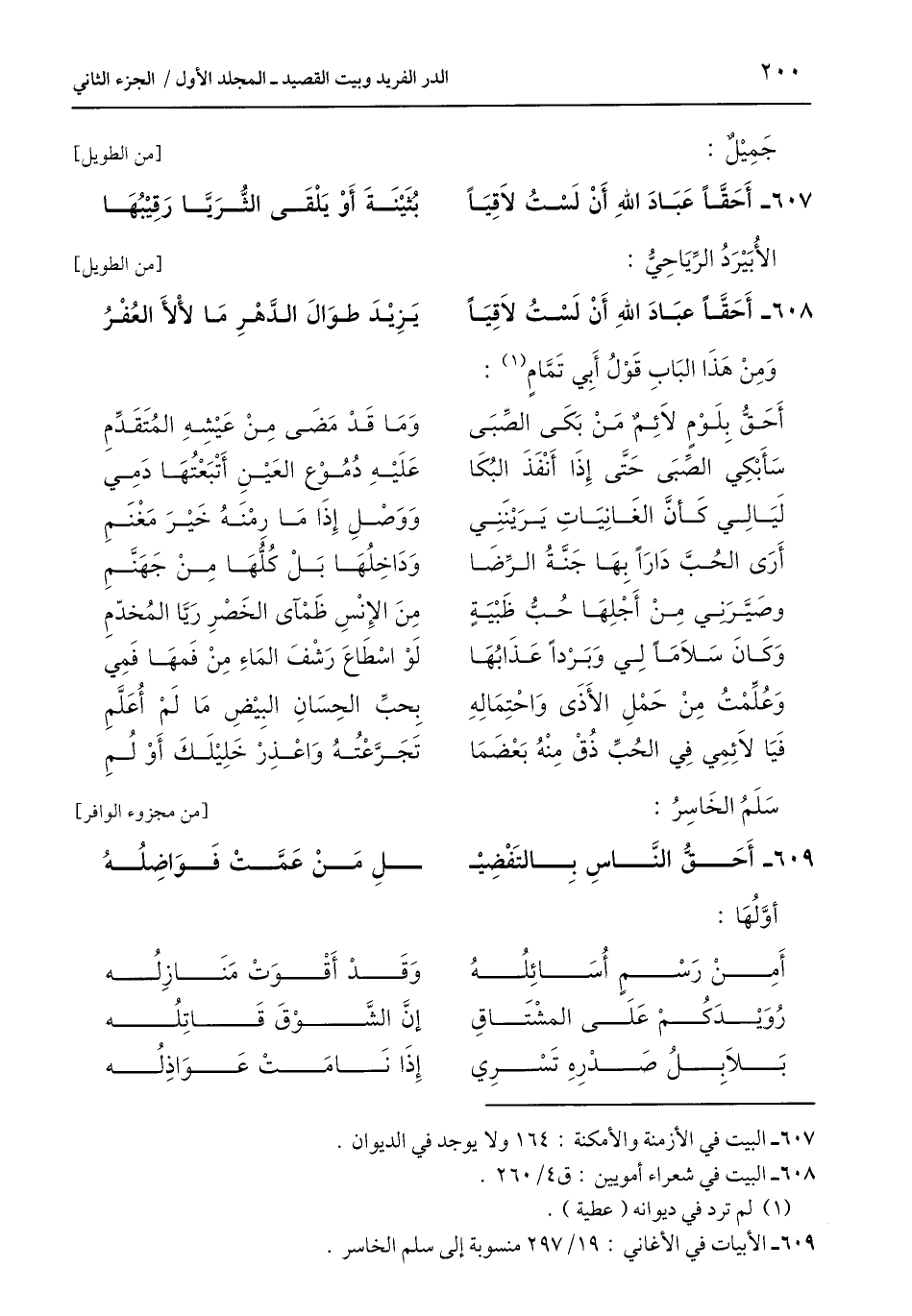 607 - البيت في الأزمنة والأمكنة: 164 ولا يوجد في الديوان.