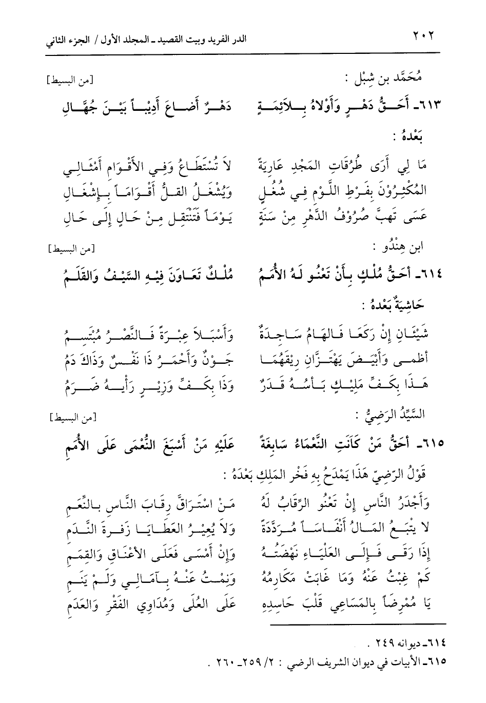 615 - الأبيات في ديوان الشريف الرضي: 2/ 259 - 260.