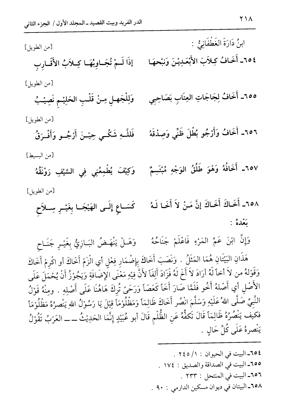 658 - أَخَاكَ أَخَاكَ إِنَّ مَنْ لَا أَخَا لَهُ ... كسَاعٍ إِلَى الهَيْجَا بِغَيْرِ سِلَاحِ