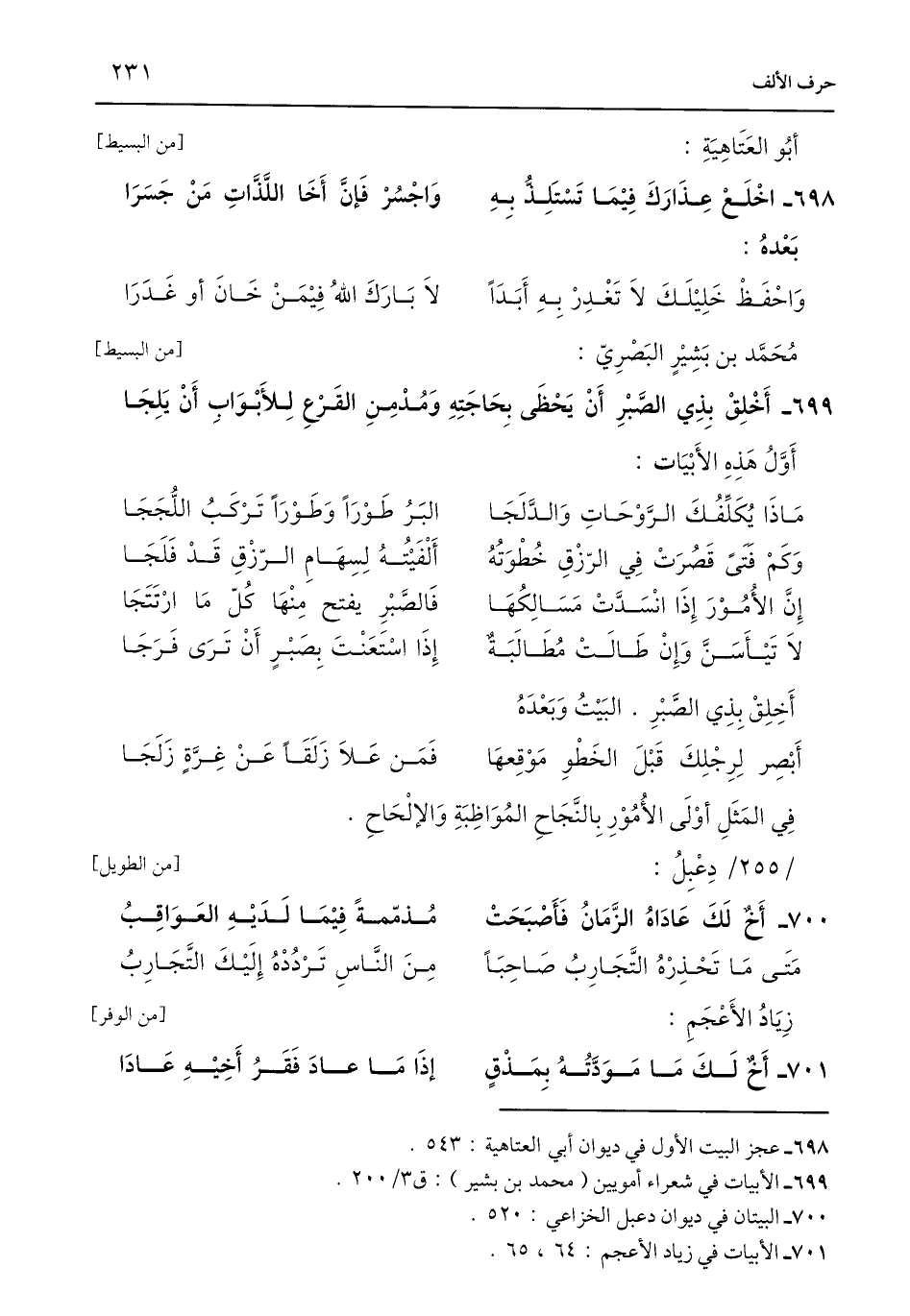 700 - البيتان في ديوان دعبل الخزاعي: 520.