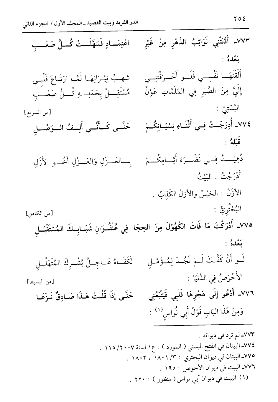 774 - البيتان في الفتح البستي (المورد): ع 1 لسنة 2007/ 115.