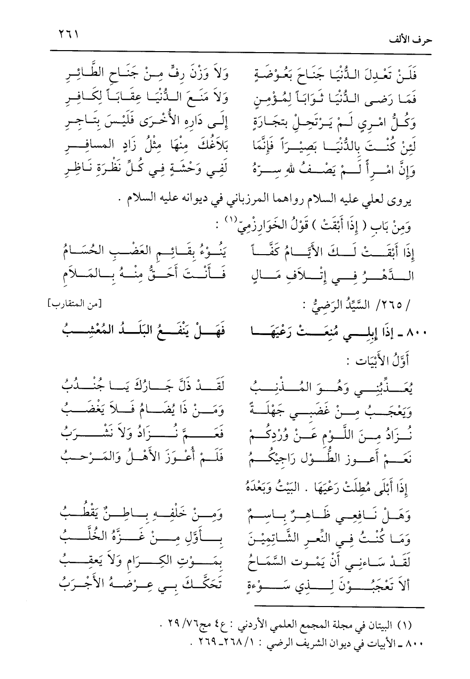 800 - الأبيات في ديوان الشريف الرضي: 1/ 268 - 269.