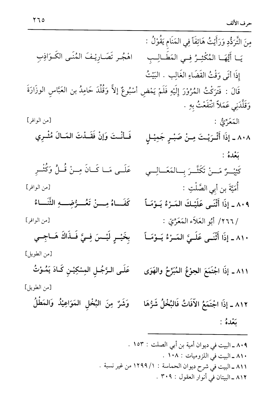 808 - إِذَا أَثْرَيْتَ مِنْ صَبْرٍ جَمِيْلٍ ... فَأنْتَ وَإِنْ فَقَدْتَ المَالَ مُثْرِي