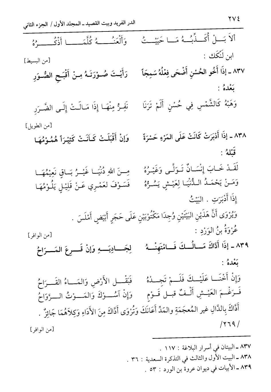 839 - الأبيات في ديوان عروة بن الورد: 53.