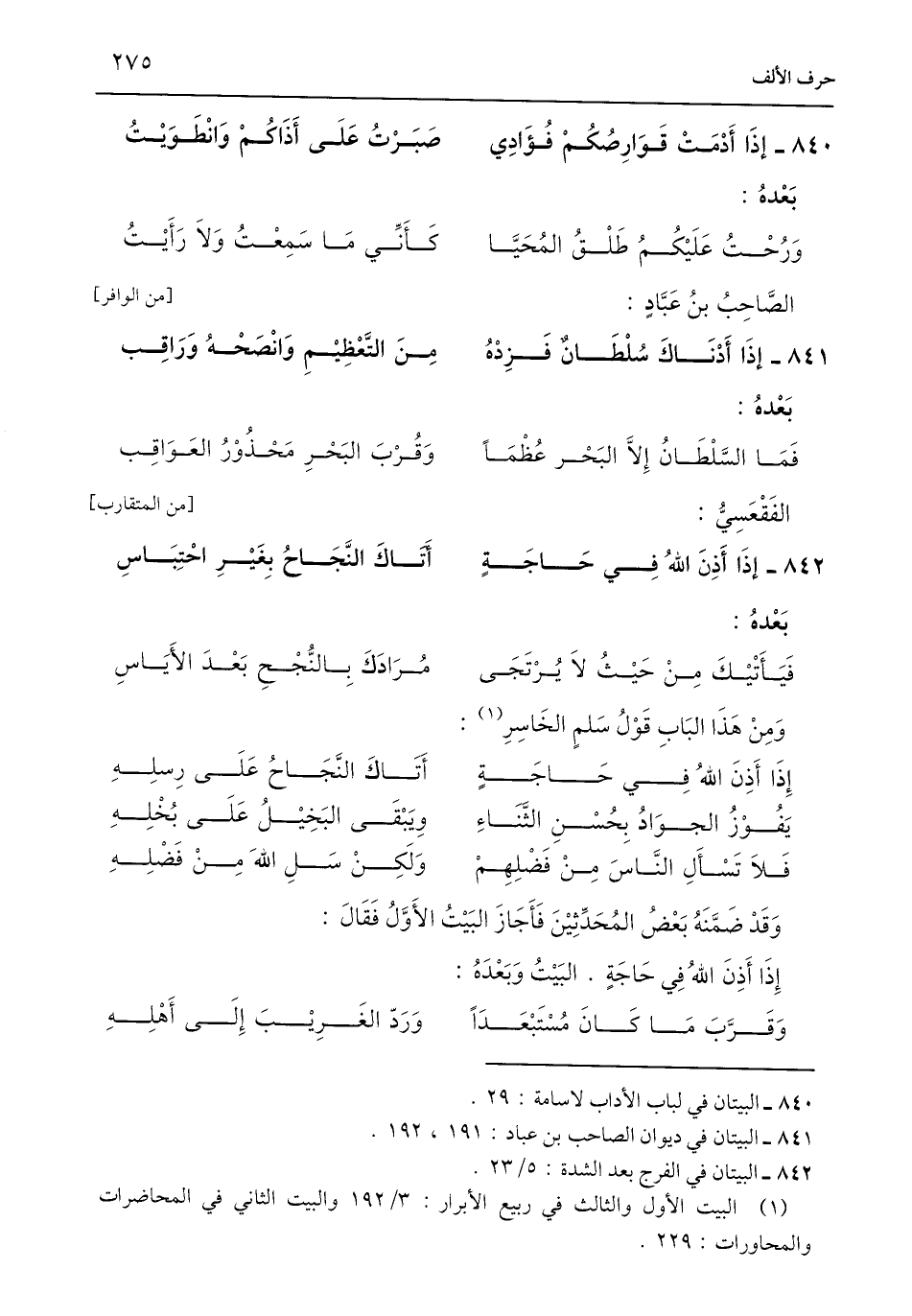 الصَّاحِبُ بنُ عَبَّادٍ: [من الوافر]
