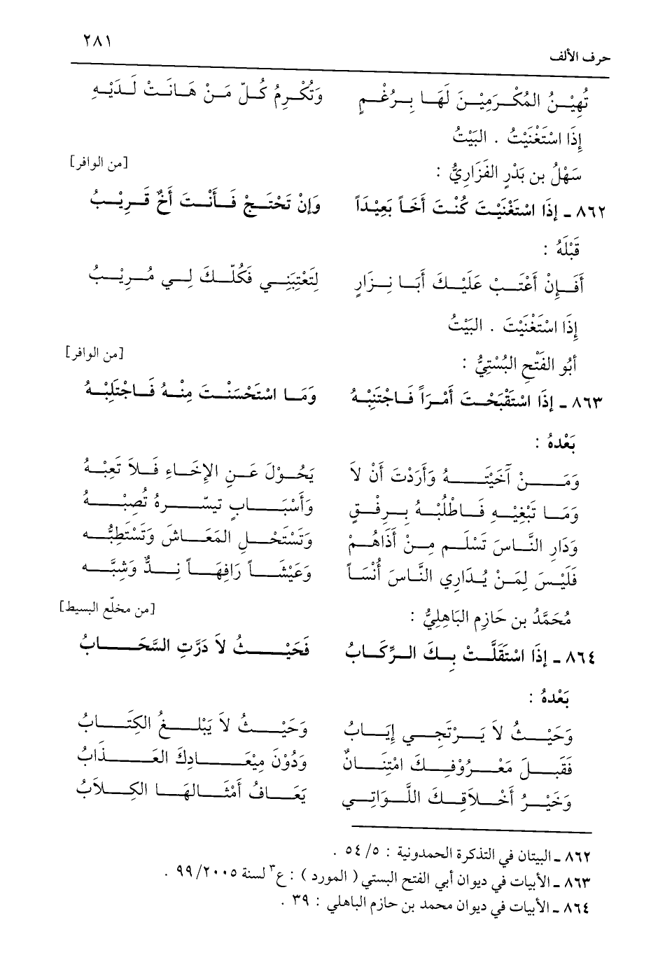 863 - الأبيات في ديوان أبي الفتح البستي (المورد): ع 3 لسنة 2005/ 99.