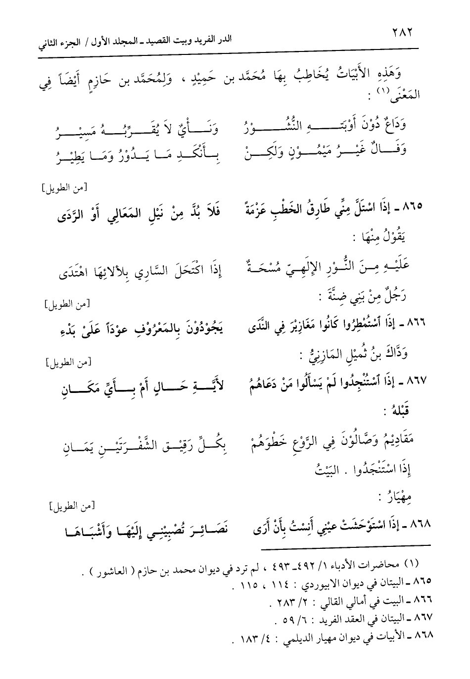 (¬1) محاضرات الأدباء 1/ 492 - 493، لم ترد في ديوان محمد بن حازم (العاشور).