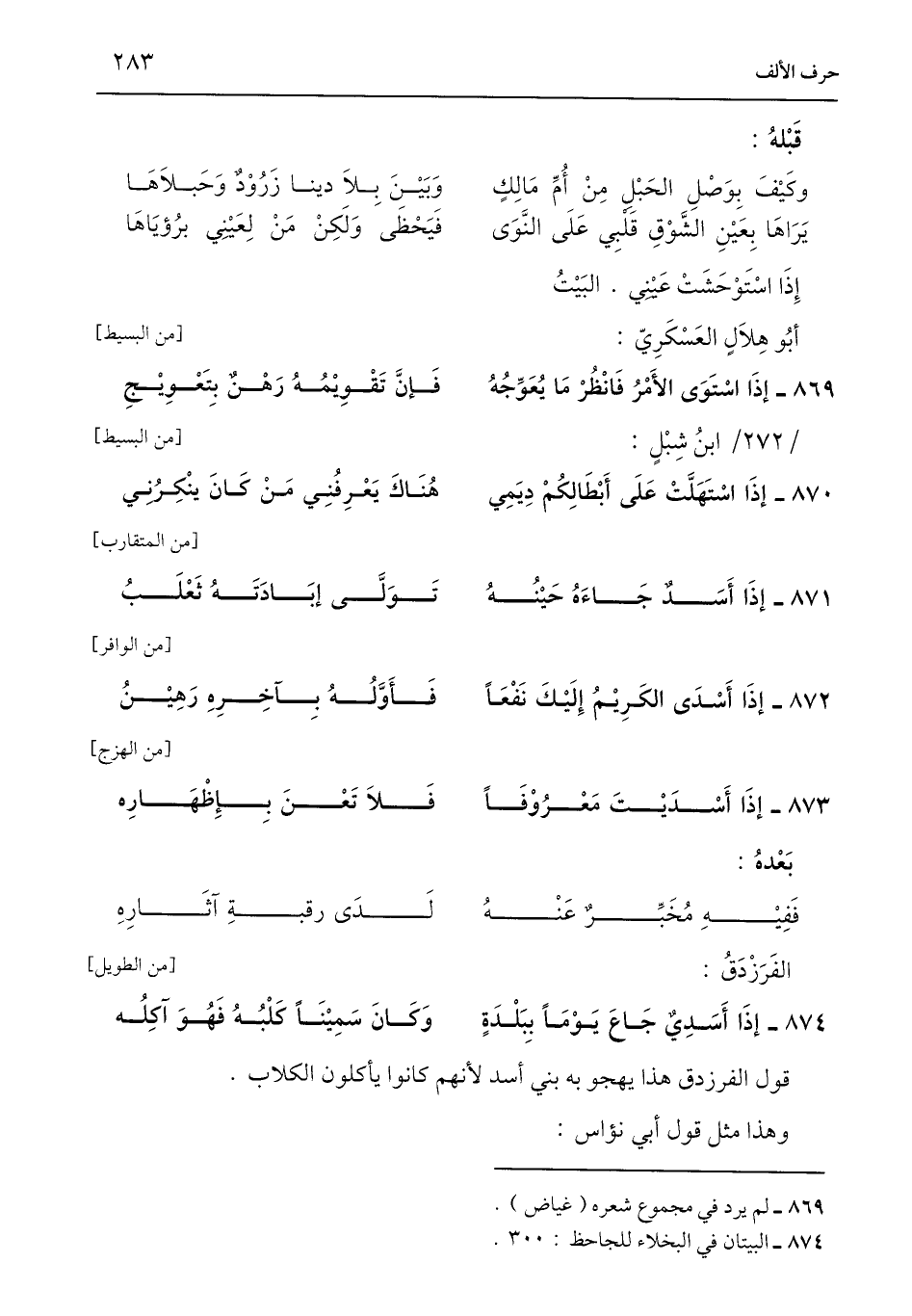 874 - البيتان في البخلاء للجاحظ: 300.