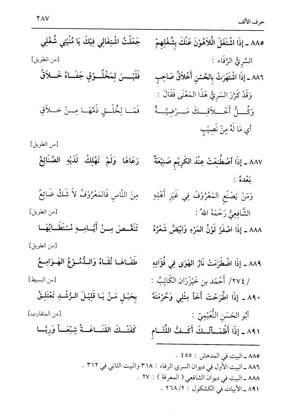 885 - إِذَا اشْتَغَلَ الَّلَاهُوْنَ عَنْكَ بشُغْلِهِمْ ... جَعَلْتُ اشْتِغَالِي فِيْكَ يَا مُنْيَتِي شُغْلِي