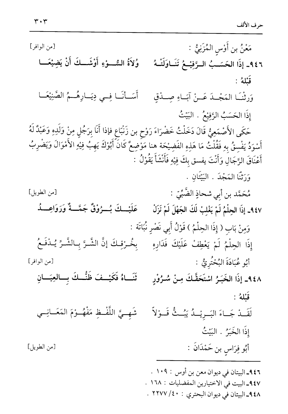 948 - إِذَا الخَبَرُ اسْتَحَقَّكَ مِنْ سُرُوْرٍ ... ثَنَاهُ فَكَيْفَ ظَنُّكَ بِالعِيَانِ
