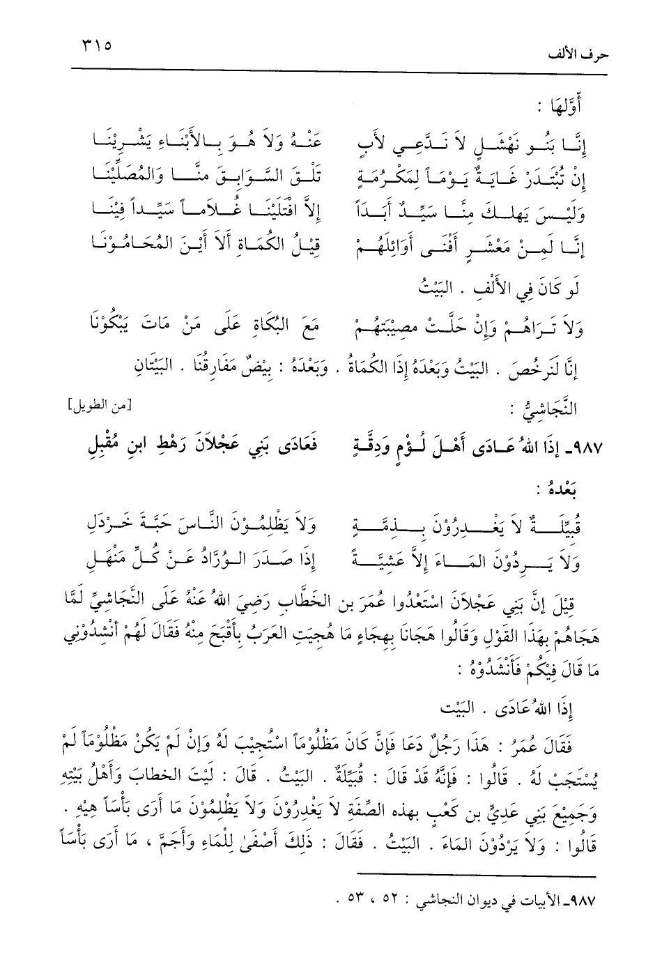 987 - الأبيات في ديوان النجاشي: 52، 53.