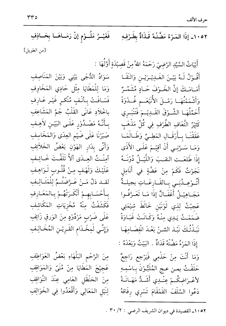 1052 - القصيدة في ديوان الشريف الرضي: 2/ 30.