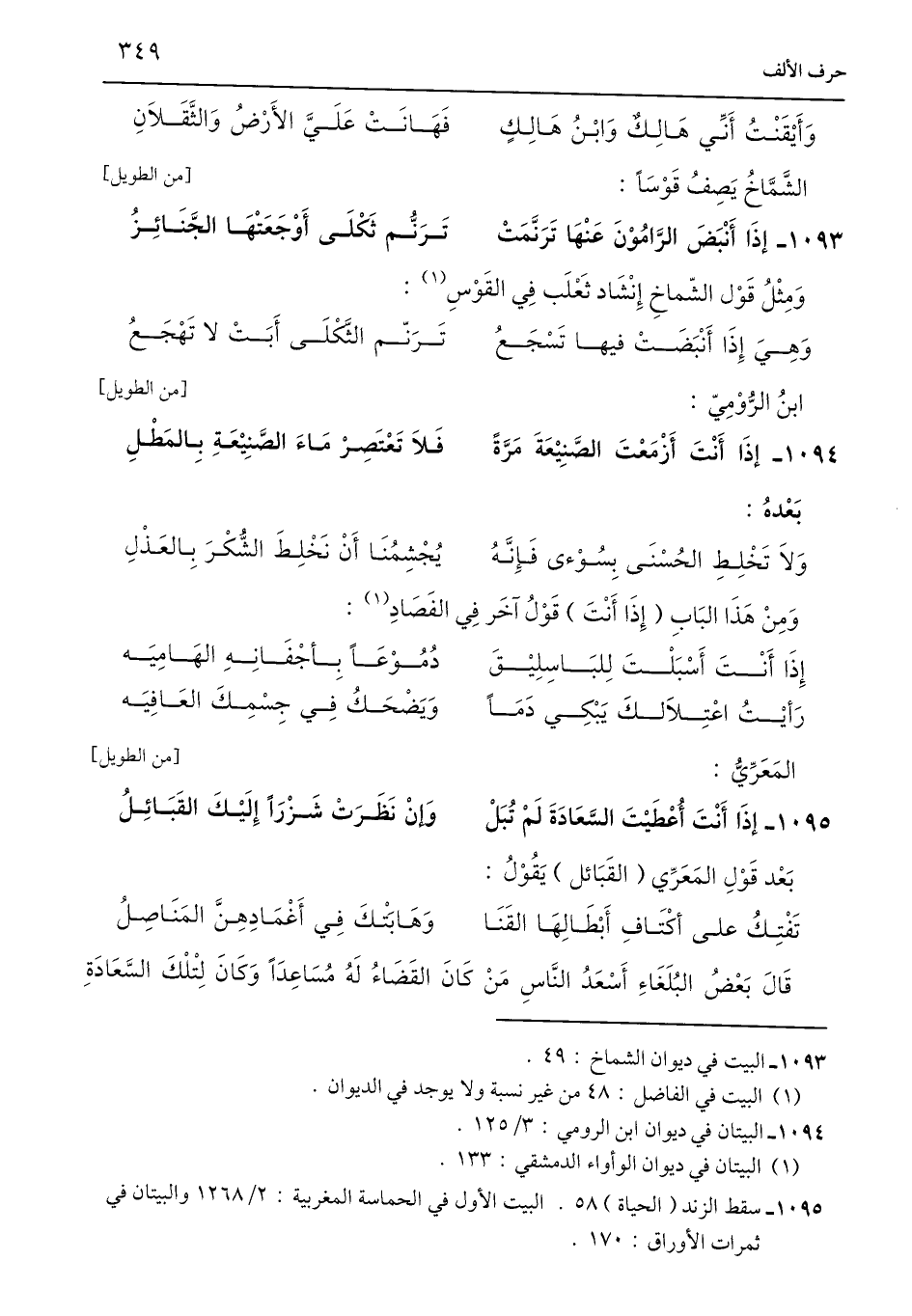 1095 - سقط الزند (الحياة) 58. البيت الأول في الحماسة المغربية: 2/ 1268 والبيتان في ثمرات الأوراق: 170.
