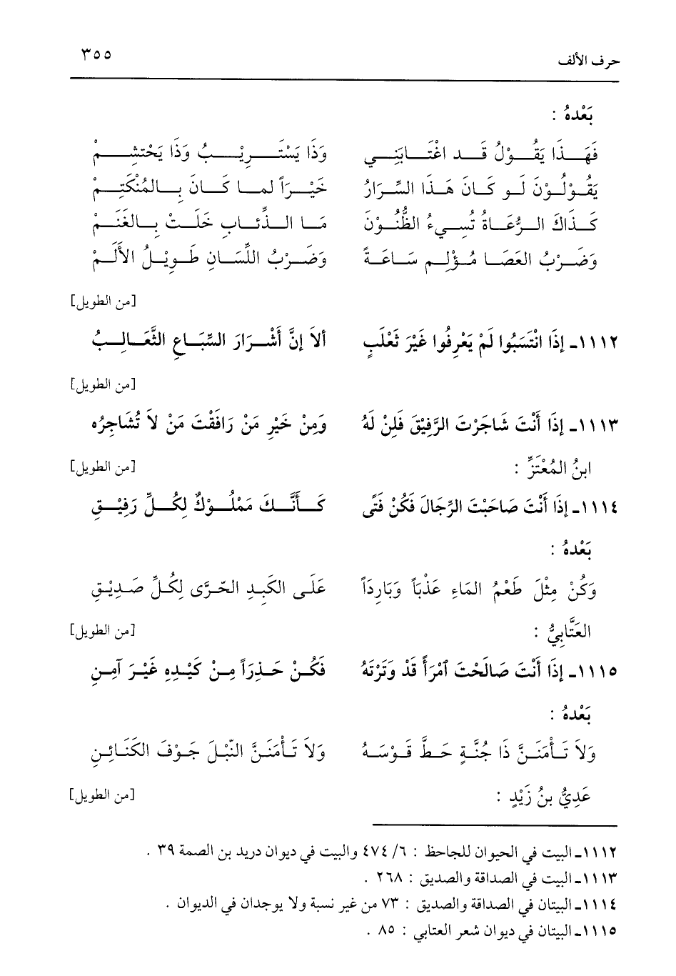 1113 - إِذَا أَنْتَ شَاجَرْتَ الرَّفِيْقَ فَلِنْ لَهُ ... وَمنْ خَيْرِ مَنْ رَافَقْتَ مَنْ لَا تُشَاجِرُه