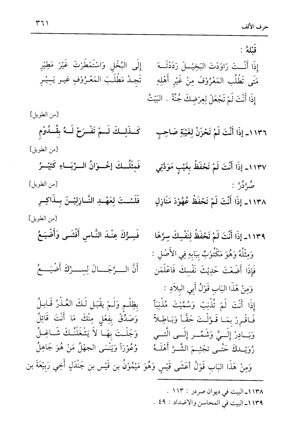 1138 - إِذَا أَنْتَ لَمْ تَحْفَظْ عُهُوْدَ مَنَازِلٍ ... فَلَسْتَ لِعَهْدِ النَّازِلِيْنَ بِذَاكِرِ