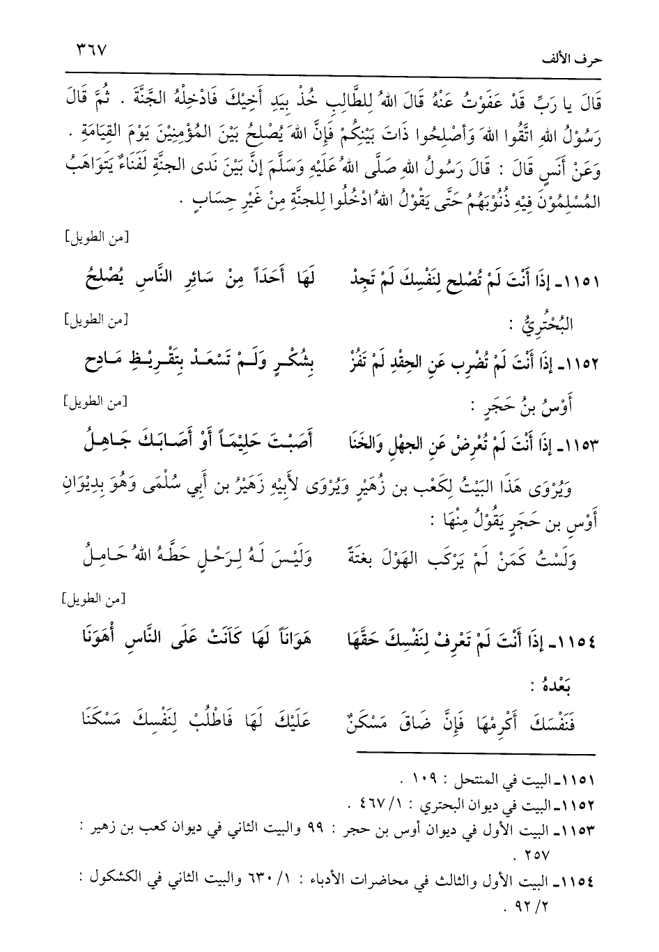 1153 - البيت الأول في ديوان أوس بن حجر: 99 والبيت الثاني في ديوان كعب بن زهير: 257.