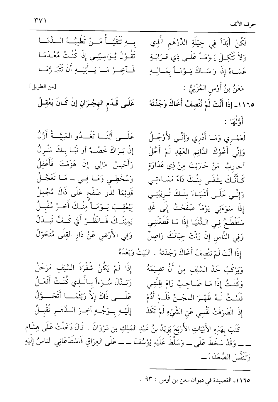 1165 - القصيدة في ديوان معن بن أوس: 93.