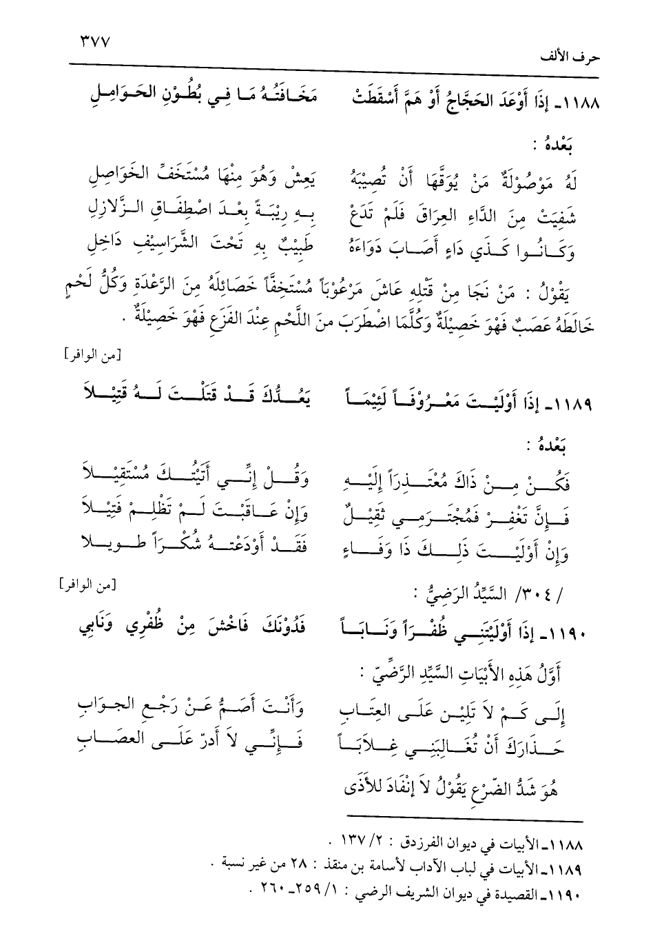 1190 - القصيدة في ديوان الشريف الرضي: 1/ 259 - 260.