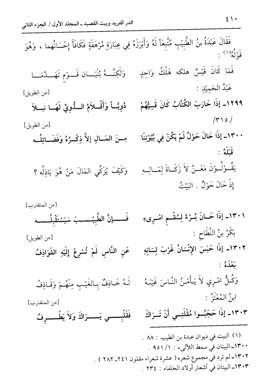 1302 - لم ترد في مجموع شعره (عشرة شعراء مقلون 241 - 282).