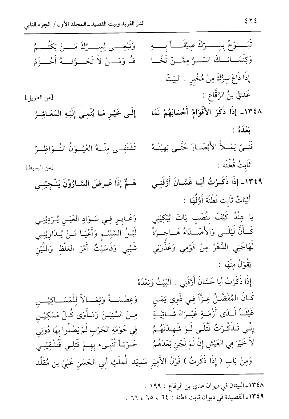 1349 - القصيدة في ديوان ثابت قطنة: 64، 65، 66.