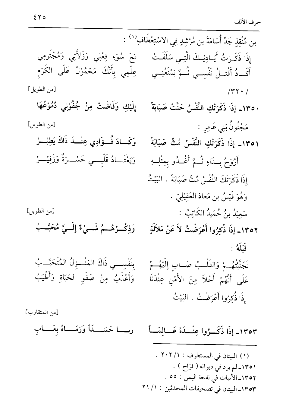 1352 - إِذَا ذُكِرُوا أَعْرَضْتُ لَا عَنْ مَلَالَةٍ ... وَذِكْرُهُمُ شَىْءٌ إِلَيَّ مُحَبَّبُ