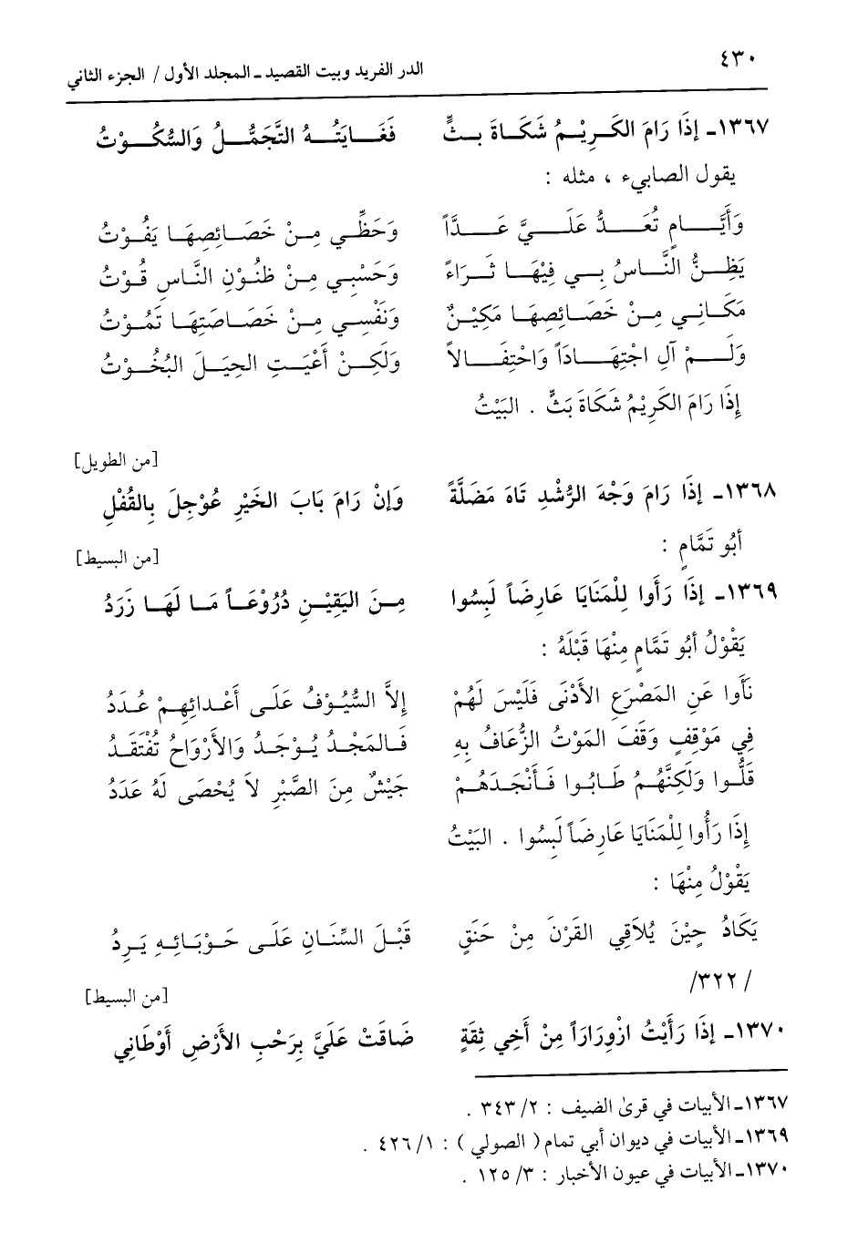 1369 - الأبيات في ديوان أبي تمام (الصولي): 1/ 426.