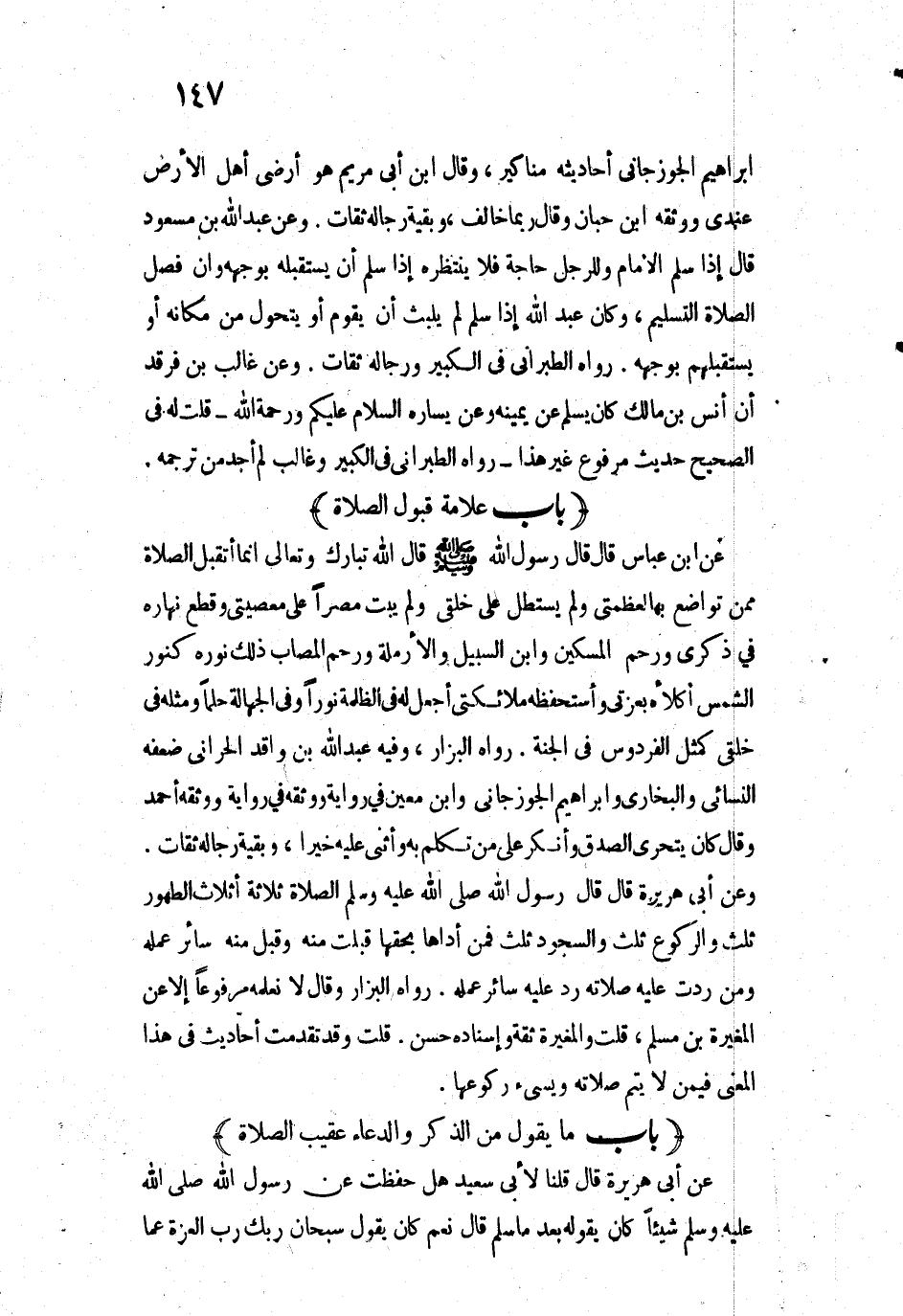 [بَابُ عَلَّامَةِ قَبُولِ الصَّلَاةِ]