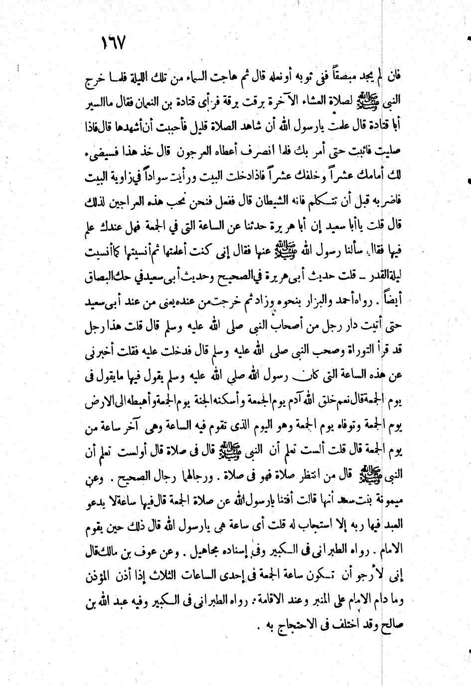 رَوَاهُ أَحْمَدُ وَالْبَزَّارُ بِنَحْوِهِ وَزَادَ: ثُمَّ «خَرَجْتُ مِنْ عِنْدِهِ - يَعْنِي: مِنْ عِنْدِ أَبِي سَعِيدٍ - حَتَّى أَتَيْتُ دَارَ رَجُلٍ مِنْ أَصْحَابِ النَّبِيِّ - صَلَّى اللَّهُ عَلَيْهِ وَسَلَّمَ - قَالَ: قُلْتُ: هَذَا رَجُلٌ قَدْ قَرَأَ التَّوْرَاةَ وَصَحِبَ النَّبِيَّ - صَلَّى اللَّهُ عَلَيْهِ وَسَلَّمَ - قَالَ: فَدَخَلْتُ عَلَيْهِ فَقُلْتُ: أَخْبِرْنِي عَنْ هَذِهِ السَّاعَةِ الَّتِي كَانَ رَسُولُ اللَّهِ - صَلَّى اللَّهُ عَلَيْهِ وَسَلَّمَ - يَقُولُ فِيهَا مَا يَقُولُ فِي يَوْمِ الْجُمُعَةِ؟ قَالَ: نَعَمْ، خَلَقَ اللَّهُ آدَمَ يَوْمَ الْجُمُعَةِ وَأَسْكَنَهُ الْجَنَّةَ يَوْمَ الْجُمُعَةِ وَأَهْبَطَهُ إِلَى الْأَرْضِ يَوْمَ الْجُمُعَةِ وَتَوَفَّاهُ يَوْمَ الْجُمُعَةِ، وَهُوَ الْيَوْمُ الَّذِي تَقُومُ فِيهِ السَّاعَةُ، وَهِيَ آخَرُ سَاعَةٍ مِنْ يَوْمِ الْجُمُعَةِ قَالَ: قُلْتُ: أَلَسْتَ تَعْلَمُ أَنَّ النَّبِيَّ - صَلَّى اللَّهُ عَلَيْهِ وَسَلَّمَ - قَالَ: " فِي صَلَاةٍ؟ " قَالَ: أَوَلَسْتَ تَعْلَمُ أَنَّ النَّبِيَّ - صَلَّى اللَّهُ عَلَيْهِ وَسَلَّمَ - قَالَ: " مَنِ انْتَظَرَ صَلَاةً فَهُوَ فِي صَلَاةٍ» ".
