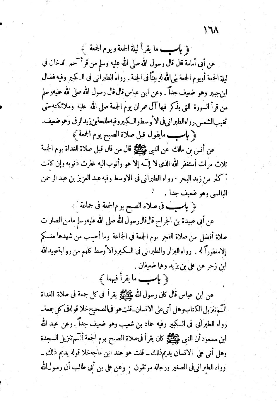 3021 - عَنِ ابْنِ عَبَّاسٍ قَالَ: «كَانَ رَسُولُ اللَّهِ - صَلَّى اللَّهُ عَلَيْهِ وَسَلَّمَ - يَقْرَأُ فِي كُلِّ جُمُعَةٍ فِي صَلَاةِ الْغَدَاةِ "الم تَنْزِيلُ الْكِتَابِ" وَ"هَلْ أَتَى عَلَى الْإِنْسَانِ» ".