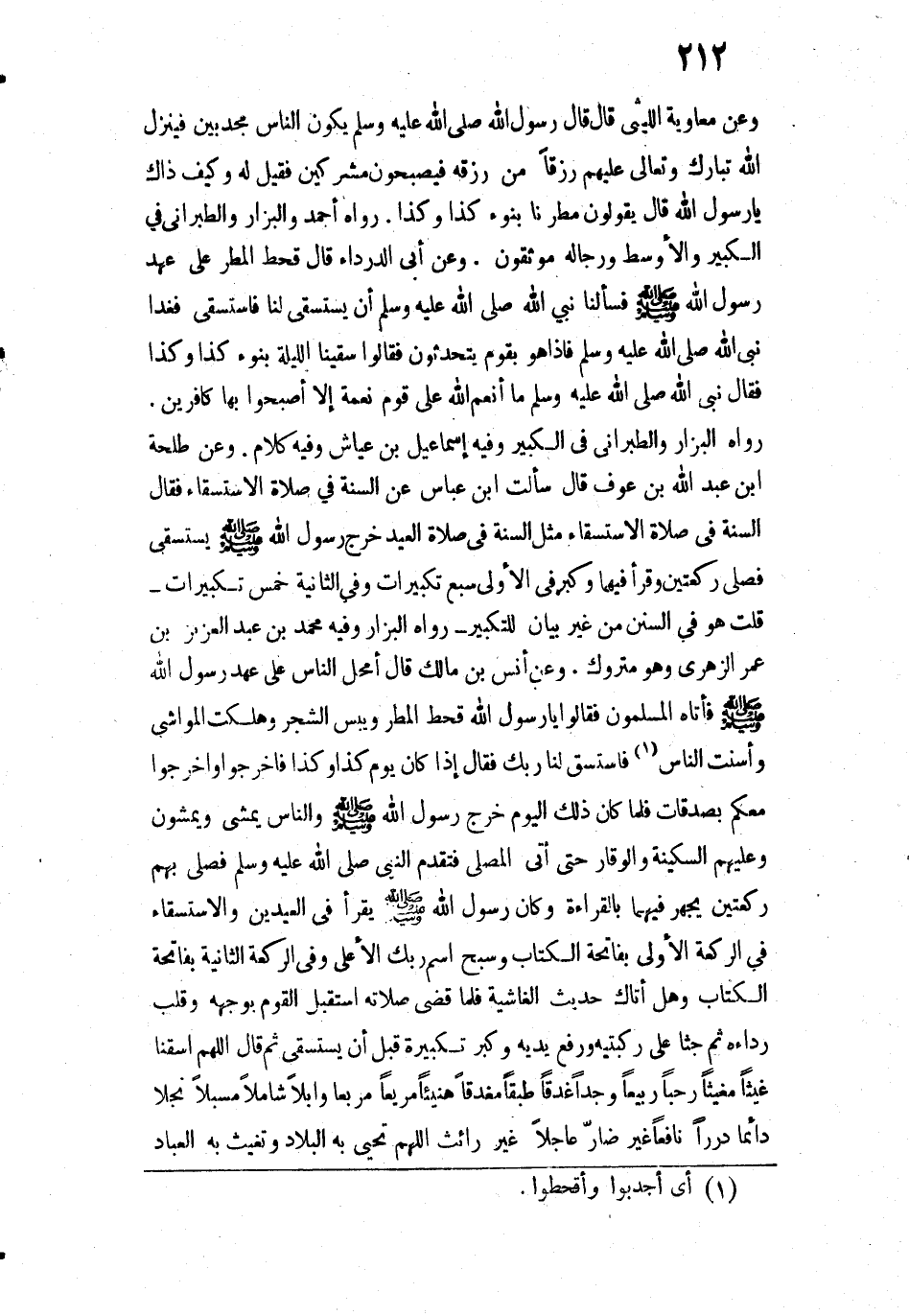 3282 - وَعَنْ طَلْحَةَ بْنِ عَبْدِ اللَّهِ بْنِ عَوْفٍ قَالَ: «سَأَلْتُ ابْنَ عَبَّاسٍ عَنِ السُّنَّةِ فِي صَلَاةِ الِاسْتِسْقَاءِ فَقَالَ: السُّنَّةُ فِي صَلَاةِ الِاسْتِسْقَاءِ مِثْلُ السُّنَّةِ فِي صَلَاةِ الْعِيدِ، خَرَجَ رَسُولُ اللَّهِ - صَلَّى اللَّهُ عَلَيْهِ وَسَلَّمَ - يَسْتَسْقِي فَصَلَّى رَكْعَتَيْنِ وَقَرَأَ فِيهِمَا وَكَبَّرَ فِي الْأُولَى سَبْعَ تَكْبِيرَاتٍ وَفِي الثَّانِيَةِ خَمْسَ تَكْبِيرَاتٍ».