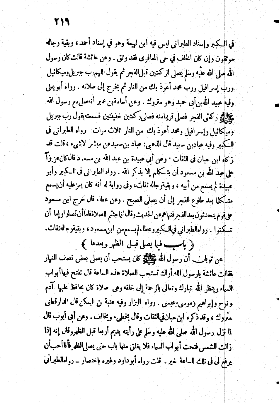 رَوَاهُ الطَّبَرَانِيُّ فِي الْكَبِيرِ، وَأَبُو عُبَيْدَةَ لَمْ يَسْمَعْ مِنْ أَبِيهِ، وَبَقِيَّةُ رِجَالِهِ ثِقَاتٌ وَفِي رِوَايَةٍ لَهُ: أَنَّهُ كَانَ يَعِزُّ عَلَيْهِ أَنْ يَسْمَعَ مُتَكَلِّمًا بَعْدَ طُلُوعِ الْفَجْرِ إِلَى أَنْ يُصَلِّيَ الصُّبْحَ.