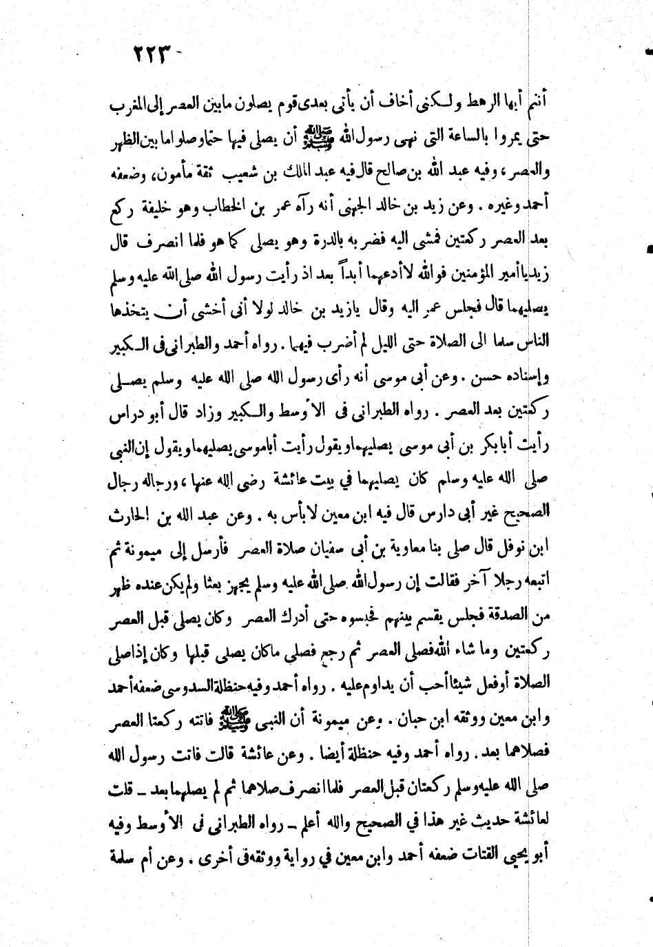 3338 - «وَعَنْ زَيْدِ بْنِ خَالِدٍ الْجُهَنِيِّ أَنَّهُ رَآهُ عُمَرُ بْنُ الْخَطَّابِ وَهُوَ خَلِيفَةٌ رَكَعَ بَعْدَ الْعَصْرِ رَكْعَتَيْنِ، فَمَشَى إِلَيْهِ فَضَرَبَهُ بِالدِّرَّةِ وَهُوَ يُصَلِّي كَمَا هُوَ فَلَمَّا انْصَرَفَ قَالَ زَيْدٌ: يَا أَمِيرَ الْمُؤْمِنِينَ فَوَاللَّهِ لَا أَدَعُهُمَا أَبَدًا بَعْدُ إِذْ رَأَيْتُ رَسُولَ اللَّهِ - صَلَّى اللَّهُ عَلَيْهِ وَسَلَّمَ - يُصَلِّيهِمَا قَالَ: فَجَلَسَ عُمَرُ إِلَيْهِ وَقَالَ: يَا زَيْدُ بْنَ خَالِدٍ لَوْلَا أَنِّي أَخْشَى أَنْ يَتَّخِذَهَا النَّاسُ سُلَّمًا إِلَى الصَّلَاةِ حَتَّى اللَّيْلِ لَمْ أَضْرِبْ فِيهِمَا».