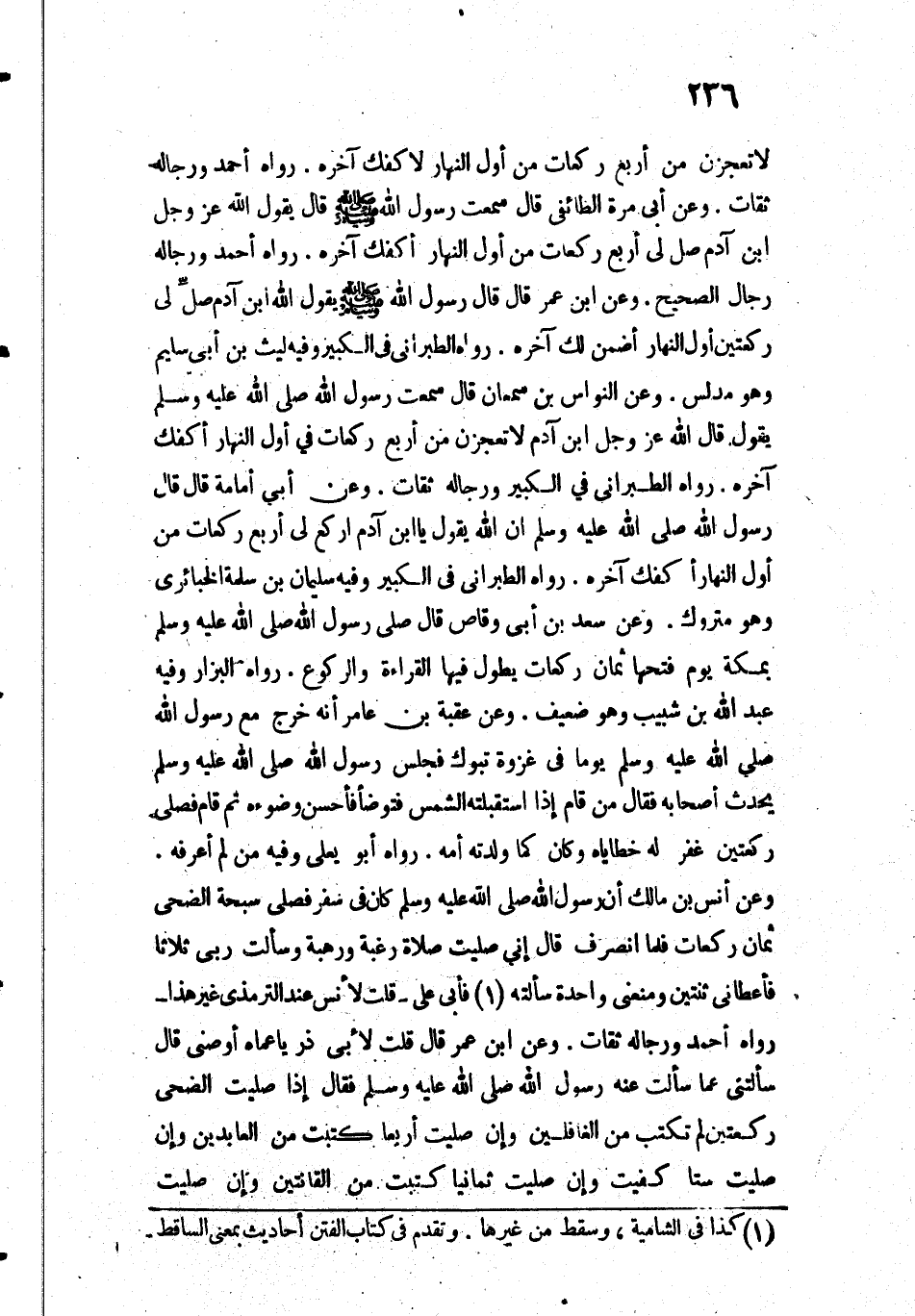 لَا تَعْجَزَنَّ مِنْ أَرْبَعِ رَكَعَاتٍ مِنْ أَوَّلِ النَّهَارِ لِأَكْفِكَ آخِرَهُ» ".