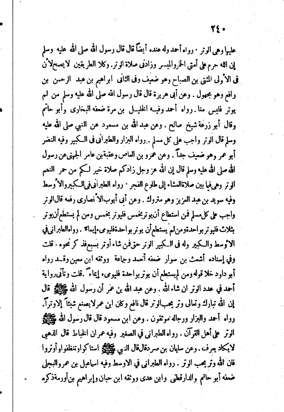 3440 - وَعَنْ عَبْدِ اللَّهِ بْنِ مَسْعُودٍ عَنِ النَّبِيِّ - صَلَّى اللَّهُ عَلَيْهِ وَسَلَّمَ - قَالَ: «الْوِتْرُ وَاجِبٌ عَلَى كُلِّ مُسْلِمٍ».