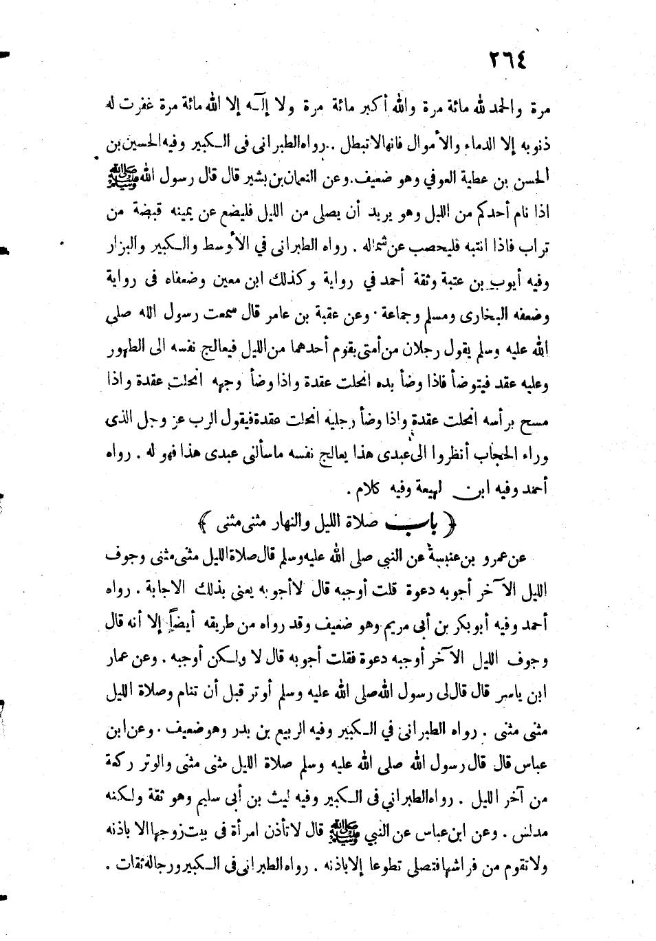 3587 - وَعَنْ عُقْبَةَ بْنِ عَامِرٍ قَالَ: سَمِعْتُ رَسُولَ اللَّهِ - صَلَّى اللَّهُ عَلَيْهِ وَسَلَّمَ - يَقُولُ: " «رَجُلَانِ مِنْ أُمَّتِي يَقُومُ أَحَدُهُمَا مِنَ اللَّيْلِ فَيُعَالِجُ نَفْسَهُ إِلَى الطَّهُورِ وَعَلَيْهِ عُقَدٌ فَيَتَوَضَّأُ فَإِذَا وَضَّأَ يَدَهُ انْحَلَّتْ عُقْدَةٌ وَإِذَا وَضَّأَ وَجْهَهُ انْحَلَّتْ عُقْدَةٌ وَإِذَا مَسَحَ بِرَأْسِهِ انْحَلَّتْ عُقْدَةٌ وَإِذَا وَضَّأَ رِجْلَيْهِ انْحَلَّتْ عُقْدَةٌ فَيَقُولُ الرَّبُّ - عَزَّ وَجَلَّ - الَّذِي وَرَاءَ الْحِجَابِ: انْظُرُوا إِلَى عَبْدِي هَذَا يُعَالِجُ نَفْسَهُ مَا سَأَلَنِي عَبْدِي هَذَا فَهُوَ لَهُ» ".