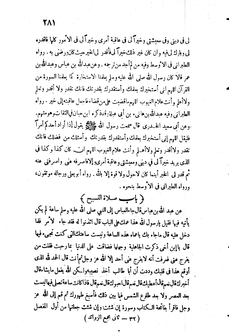 3678 - عَنْ عَبْدِ اللَّهِ بْنِ عَبَّاسٍ قَالَ: «جَاءَ الْعَبَّاسُ إِلَى النَّبِيِّ - صَلَّى اللَّهُ عَلَيْهِ وَسَلَّمَ - سَاعَةً لَمْ يَكُنْ يَأْتِيهِ فِيهَا فَقِيلَ: يَا رَسُولَ اللَّهِ هَذَا عَمُّكَ عَلَى الْبَابِ؟ قَالَ: " ائْذَنُوا لَهُ فَقَدْ جَاءَ لِأَمْرٍ "، فَلَمَّا دَخَلَ عَلَيْهِ قَالَ: " مَا جَاءَ بِكَ يَا عَمَّاهُ هَذِهِ السَّاعَةَ وَلَيْسَتْ سَاعَتَكَ الَّتِي كُنْتَ تَجِيءُ فِيهَا؟ " قَالَ: يَا ابْنَ أَخِي ذَكَرْتُ الْجَاهِلِيَّةَ وَجَهْلَهَا فَضَاقَتْ عَلَيَّ الدُّنْيَا بِمَا رَحُبَتْ فَقُلْتُ: مَنْ يُفَرِّجُ عَنِّي؟ فَعَرَفْتُ أَنَّهُ لَا يُفَرِّجُ عَنِّي أَحَدٌ إِلَّا اللَّهُ - عَزَّ وَجَلَّ - ثُمَّ أَنْتَ قَالَ: " الْحَمْدُ لِلَّهِ الَّذِي أَوْقَعَ هَذَا فِي قَلْبِكَ وَدِدْتُ أَنَّ أَبَا طَالِبٍ أَخَذَ نَصِيبَهُ وَلَكِنَّ اللَّهَ يَفْعَلُ مَا يَشَاءُ!! " قَالَ: " أُخْبِرُكَ؟ " قَالَ: نَعَمْ قَالَ: " أُعْطِيكَ؟ " قَالَ: قَالَ: " أَحْبُوكَ؟ " قَالَ: نَعَمْ قَالَ: " فَإِذَا كَانَتْ سَاعَةٌ تُصَلِّي فِيهَا لَيْسَتْ بَعْدَ الْعَصْرِ وَلَا بَعْدَ طُلُوعِ الشَّمْسِ فِيمَا بَيْنَ ذَلِكَ فَأَسْبِغْ طَهُورَكَ ثُمَّ قُمْ إِلَى اللَّهِ - عَزَّ وَجَلَّ - فَاقْرَأْ بِفَاتِحَةِ الْكِتَابِ وَسُورَةٍ إِنْ شِئْتَ، وَإِنْ شِئْتَ جَعَلْتَهَا مِنْ أَوَّلِ الْمُفَصَّلِ